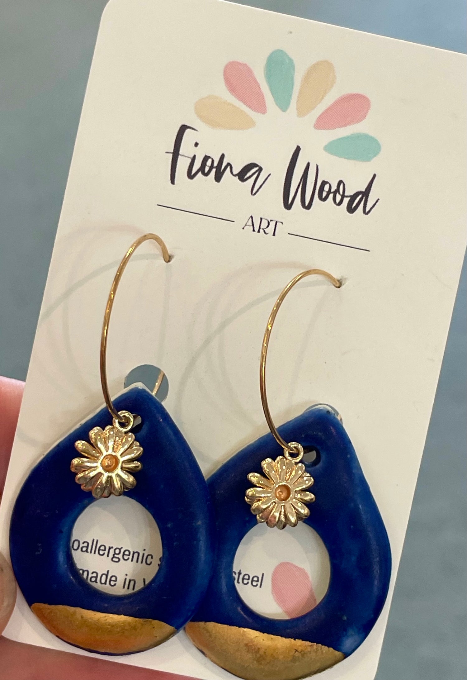 One of a kind handmade earring by Fiona Wood. All hoops are hypoallergenic stainless steel.