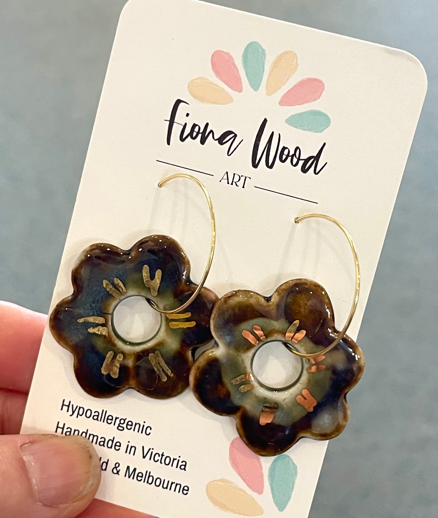 One of a kind handmade earring by Fiona Wood. All hoops are hypoallergenic stainless steel.