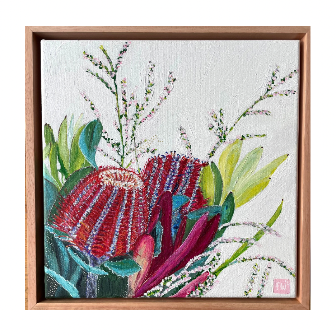 BANKSIA symbolises rebirth and new beginnings. To move on the past courageously, to have the strength which pain cannot touch and look forward to tomorrow. Its structure resembling a protective cone can symbolise nurturing and safeguarding aspects of life.