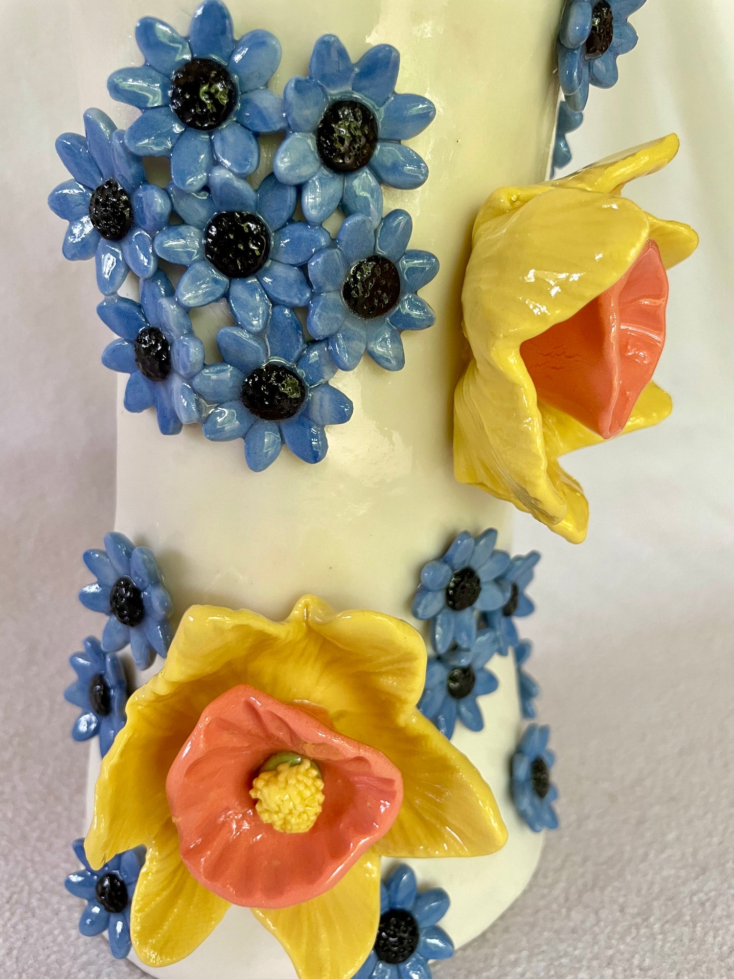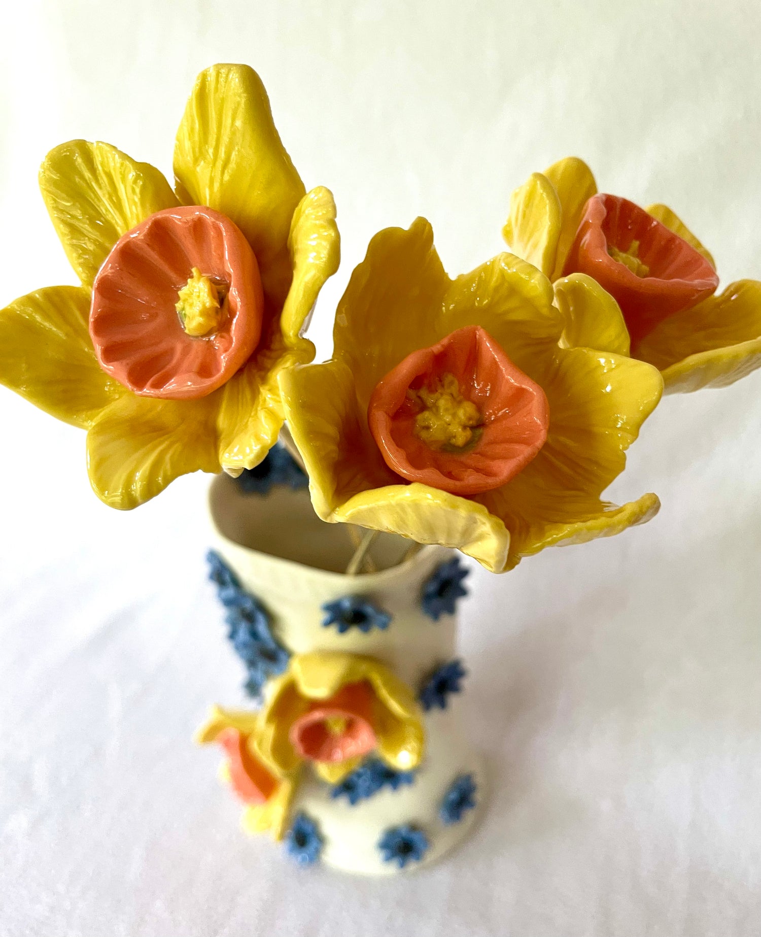 Measures H17cm x W12cm (vase) including daffodils height is 32cm.