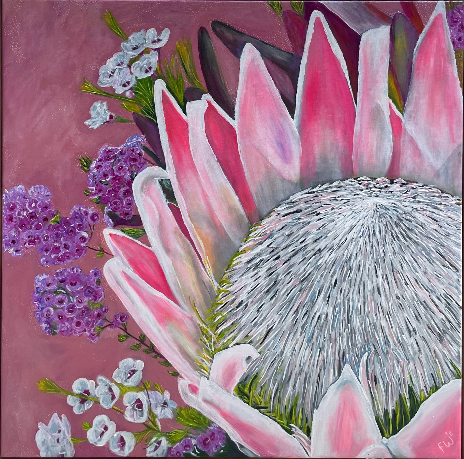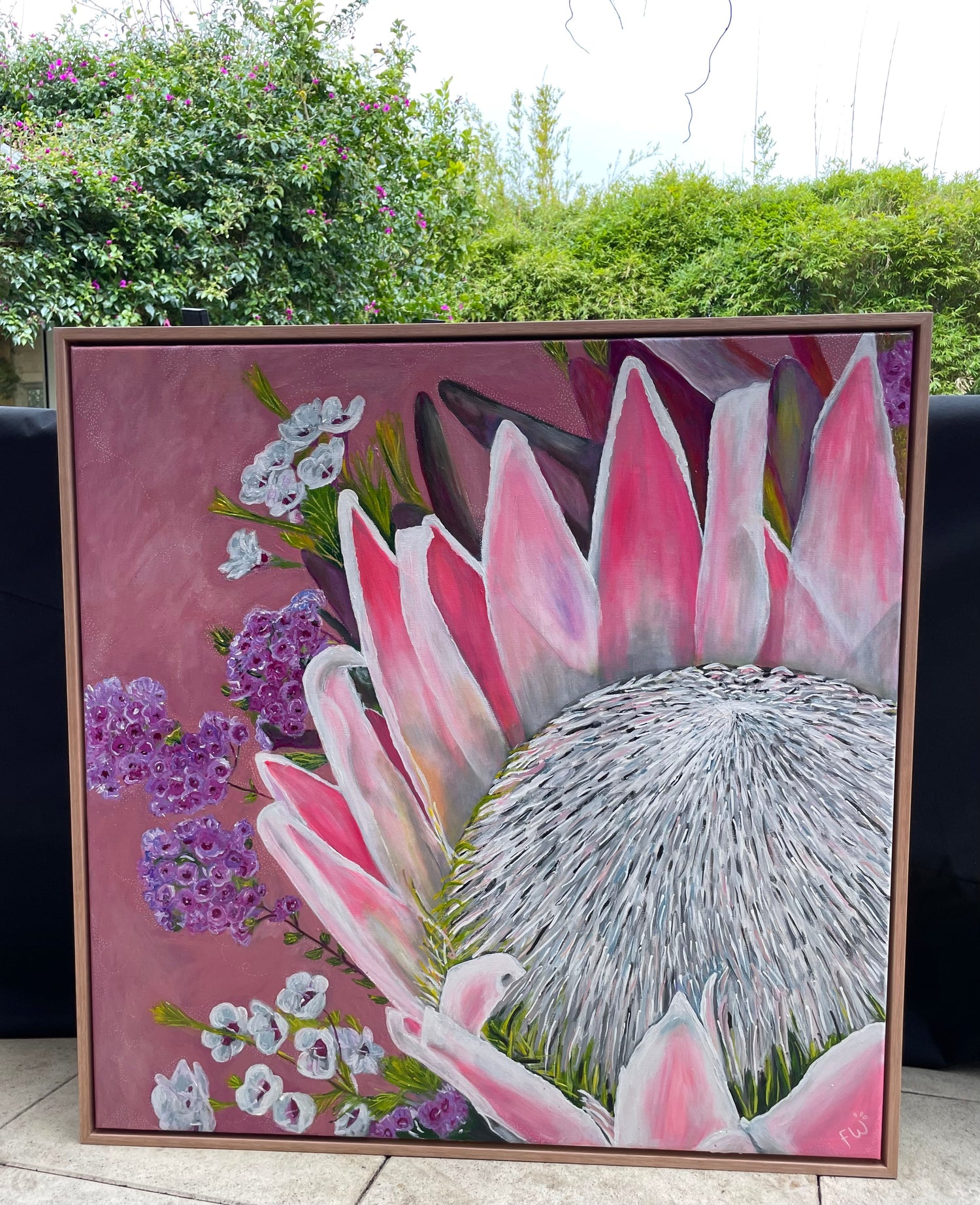 Acrylic on canvas framed in Flooded Gum